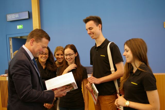 Treffen 2014 im Bundestag bei der Berlin-Fahrt der Schülerzeitung mit Nina Warken, MdB, der jetzigen Gesundheitsministerin