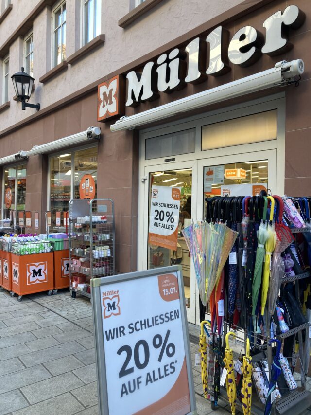 „Müller“ schließt in der Hauptstraße von Tauberbischofsheim. Wieder ein Geschäft weniger in einer sterbenden Fußgängerzone – besonders Richtung Sonnenplatz. Doch das ist mir in Blick auf die Müller-Filiale zu allgemein.