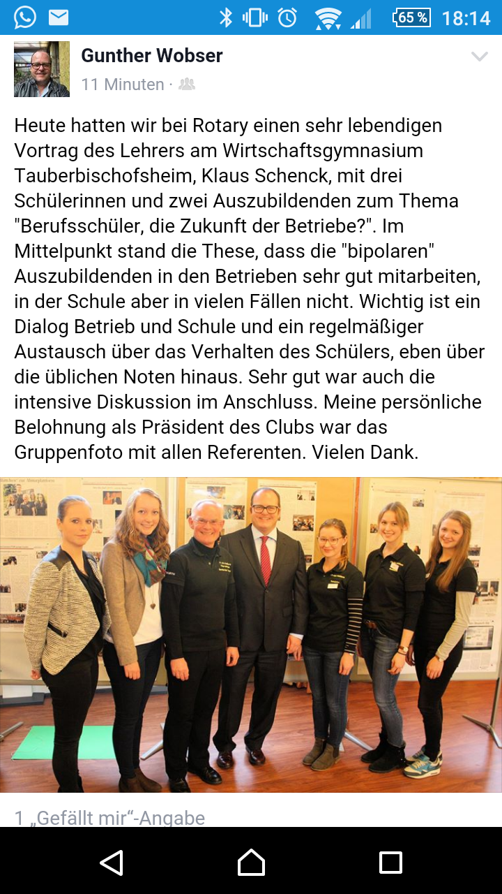 Artikel und Fotos (szenisch gestalteter Vortrag der Schülerzeitung beim Rotary-Club Tauberbischofsheim mit anschließender Diskussion, 2015): Klaus Schenck, 2025